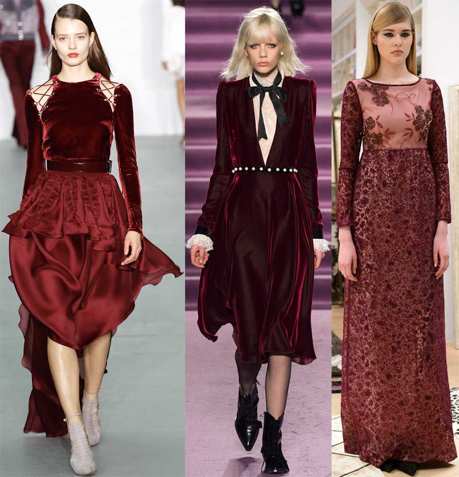 Бургундский цвет – роскошный и благородный, аристократический и универсальный. Он подходит и блондинке, и смуглой шатенке. Платья, тренчи, куртки, сапоги, плотные колготки и клатчи бургундского цвета – мягкий и тёплый вариант для бархатного сезона.