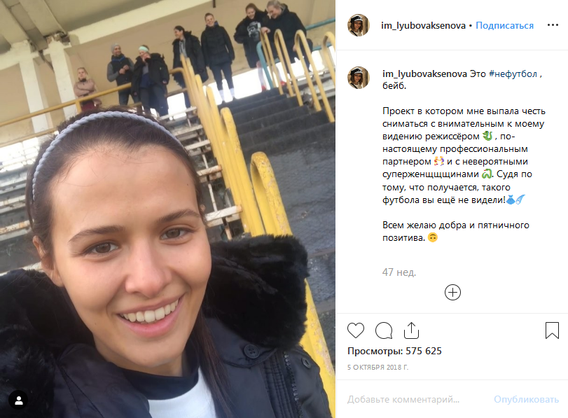 В 2018 году она с удовольствием приняла предложение режиссера фильма «Нефутбол», в котором ей предстояло перевоплотиться в капитана женской футбольной команды. За год съемочного процесса актриса познала все тяготы изнурительных тренировок, но несмотря на усталость, она была рада поучаствовать в этом увлекательном процессе и первое время после съемок даже скучала по своей команде и тренеру.