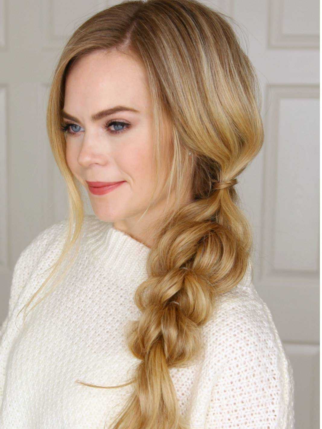 Колосок можно разнообразить, заплетая его не посередине, а на бок. Начинается коса у височной части с одной стороны и во время плетения плавно сдвигается в противоположную сторону. Заканчивать плетение нужно уже с другой стороны так, чтобы кончики находились на противоположном плече. Можно доплести косу до конца и завязать резинкой, либо собрать оставшиеся волосы в хвост.