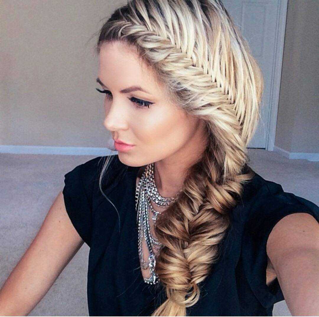 Чтобы волосы не путались, нужно удерживать заплетенные пряди большим пальцем, прижимая к голове. Концы завязывают резинкой или заколкой. Чтобы коса казалась объемнее и пышнее, можно потянуть пряди в стороны. Прическу в виде рыбьего хвоста лучше плести на средние и длинные волосы.
