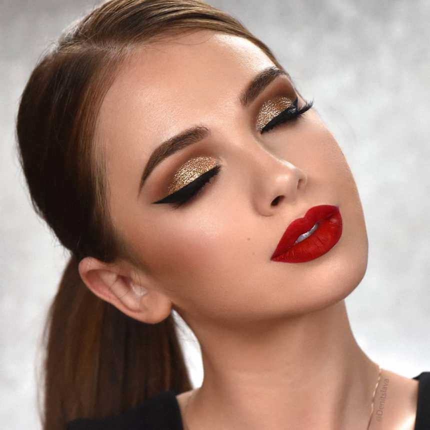 По-прежнему акцент ставиться на губы. Но классический вариант со стрелками, описанный выше, подойдет больше для дневного макияжа. Вечером он может показаться малозаметным и невыразительным. А вот дымчатый smoky eyes позволит вам выглядеть на вечеринке сногсшибательно! Но помните, что визажисты одобряют сочетание смоки айс и красной помады только для вечернего торжества!