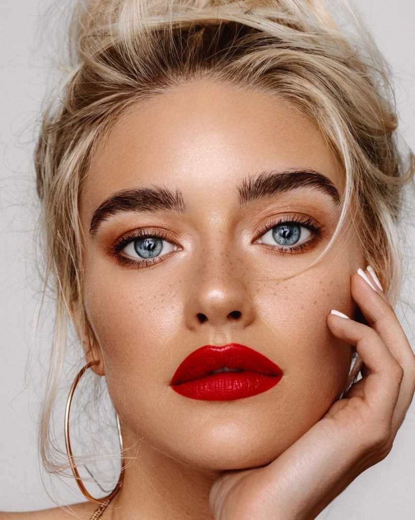 Красная помада, как магнит, притягивает внимание не только к губам, но и ко всему лицу, поэтому важно аккуратно замаскировать любые, даже мелкие прыщики, покраснения, шрамы. Тональный крем и праймер — ваши лучшие друзья.