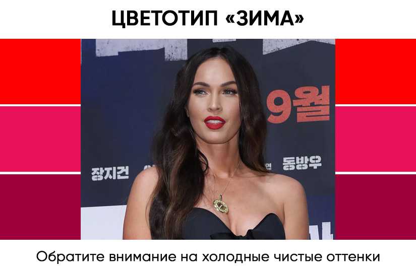 Вы «зима», если: по результатам теста вам больше идет черный, белый, розовый цвета, серебряные украшения, а не золотые. У вас темные волосы, вены синего оттенка, светлая кожа и выразительные карие или голубые глаза. Вам пойдут насыщенные цвета.