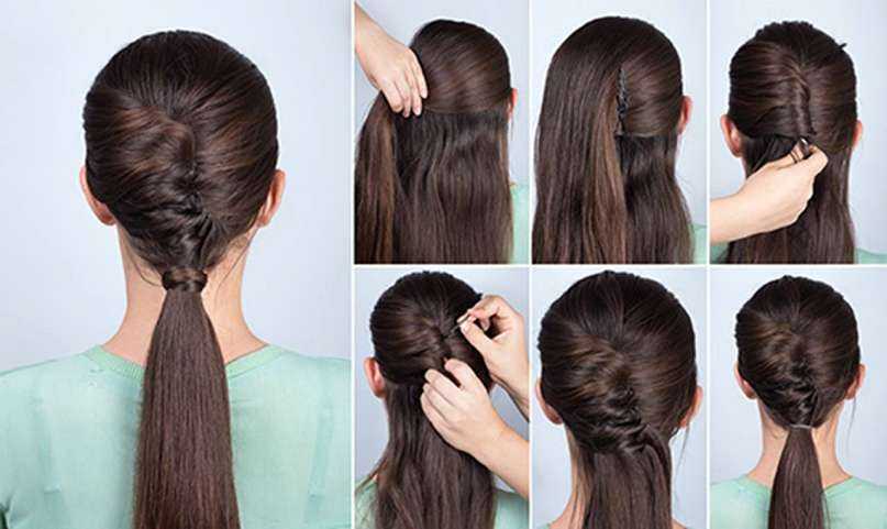 Полученный хвост немного завивают при необходимости, а пряди оставляют свободными. Простая причёска выручит при походе на вечеринку или в рабочие будни, при этом это будут выглядеть красиво и аккуратно.