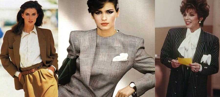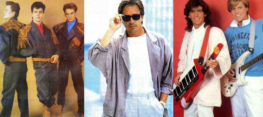 В 80-х годах мужчины носили костюмы с острым вырезом и широкими плечами. Идея заключалась в том, чтобы выглядеть сильным и авторитетным. Темные цвета с меловой полосой и пиджаки с белыми воротниками были самым распространенным стилем. Галстуки были простыми, с рисунком или иногда с причудливыми узорами, которые возвращаются в моду.
