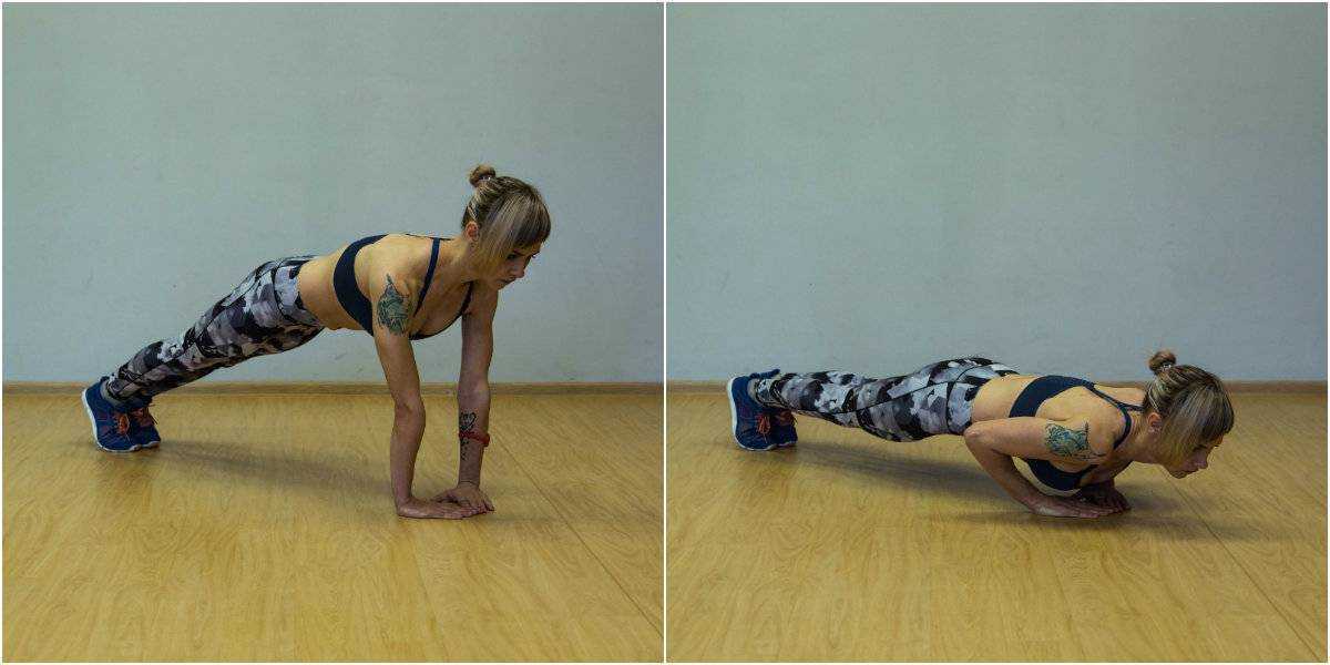 Поставьте руки так, чтобы на полу соединились указательные и большие пальцы, отставленные на 90 градусов. Между руками как бы образуется алмаз. Остальные правила те же, что и в обычных отжиманиях.