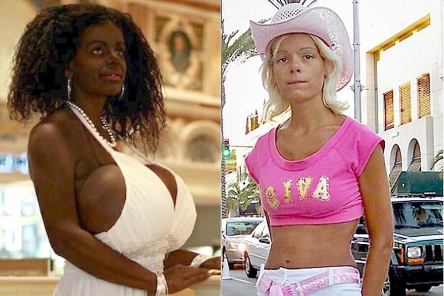 Так поступила и Мартина Биг – она решила стать Барби на современный манер, только ей ещё хотелось быть тёмной, как смуглая африканка, амазонка современного мира. В 18 лет она сделала грудь, которая была огромной, а выглядела, как два шара. При этом бюстгальтер ей не нужен был.