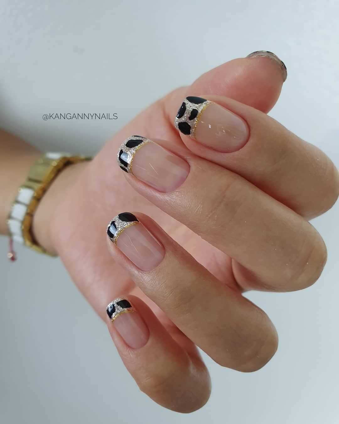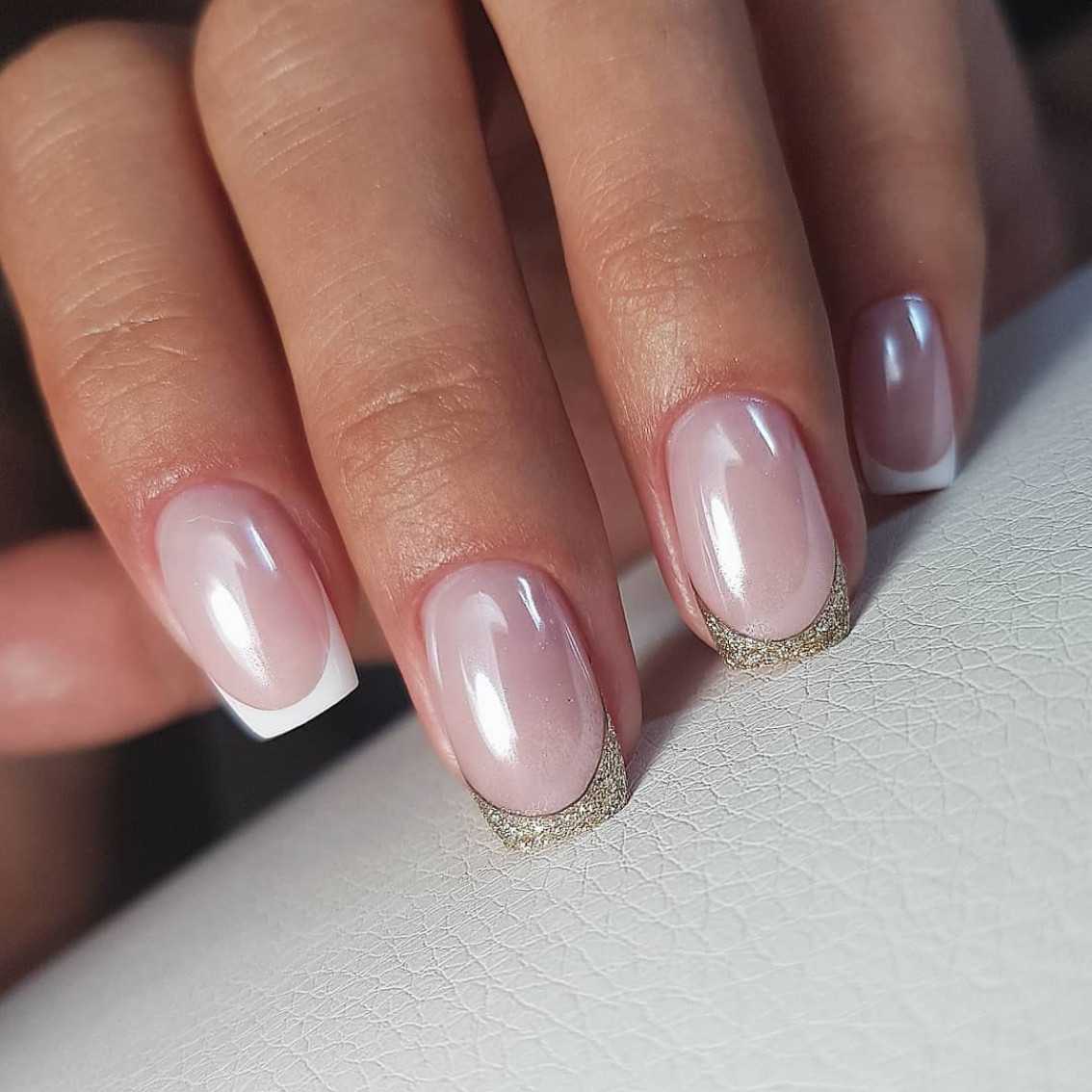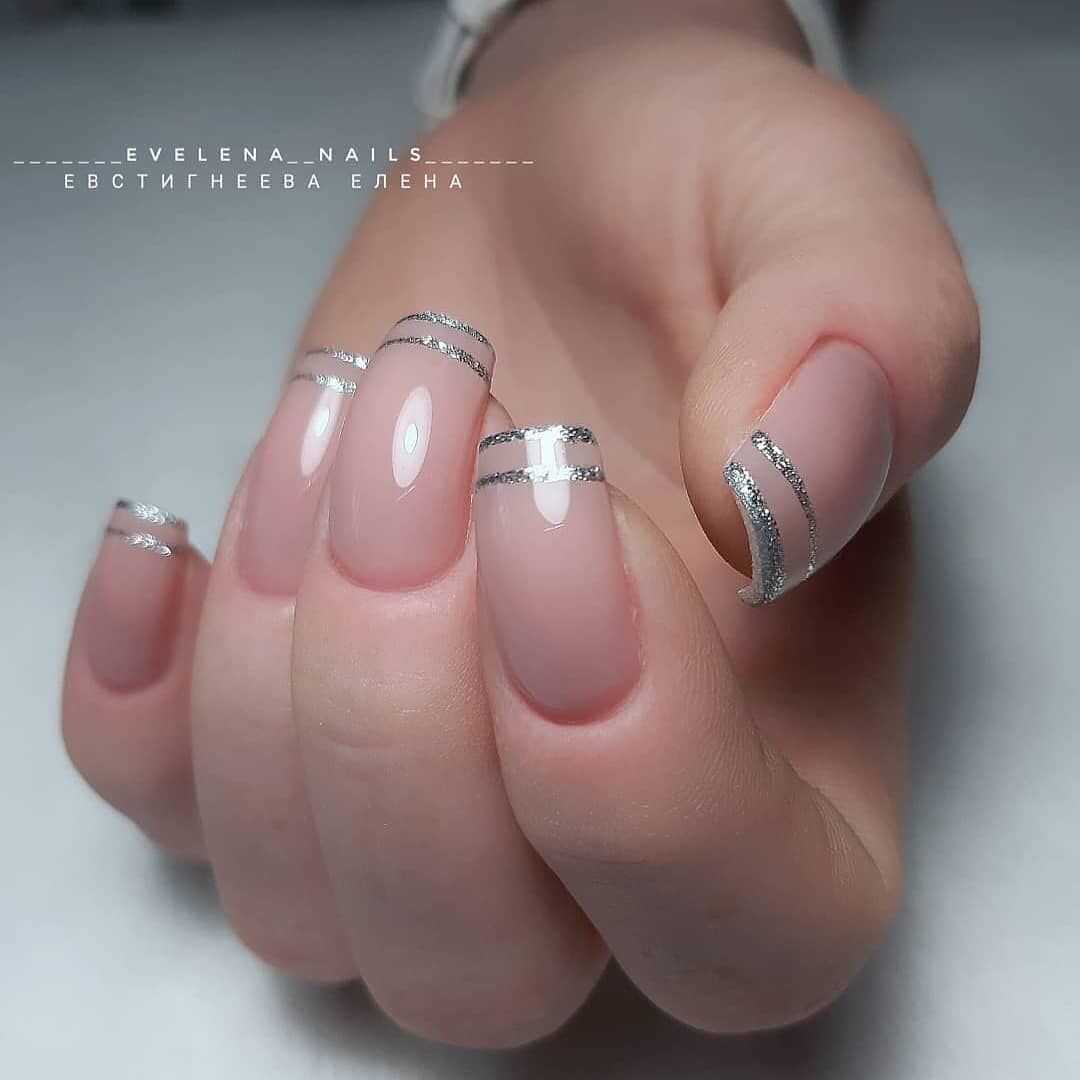 Если же классики становится недостаточно, свое внимание стоит обратить на прозрачный френч с блестками. Такой вид маникюра подойдет для какого-то особенного мероприятия, где нужно выглядеть одновременно сдержано и незабываемо