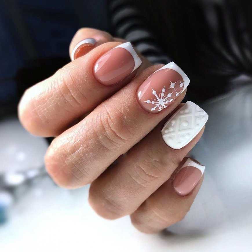 Часто французский маникюр дополняют нейл-артом. В 2020 году будут актуальны «мультяшные» картинки, надписи тонким и мелким шрифтом, вписанные в квадрат, минималистичные растительные узоры.