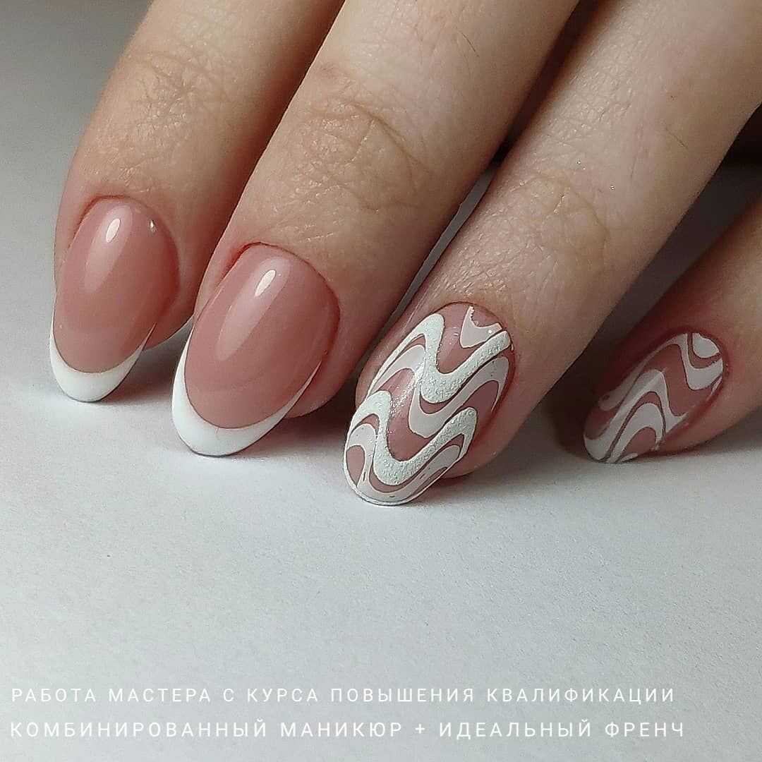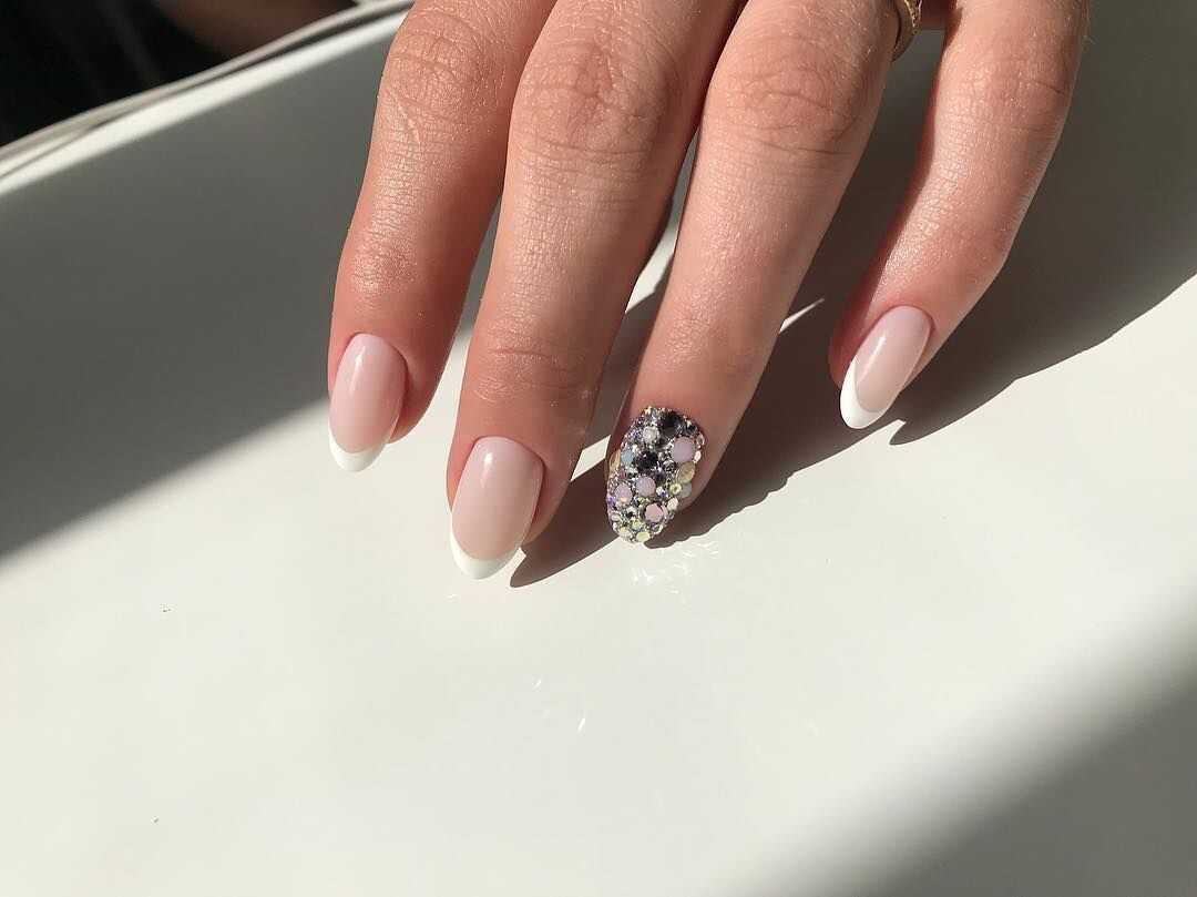 - Минималистический стильный френч сочетается с любым образом, эффектно смотрится на коротких и средней длины ногтях овальной формы.
