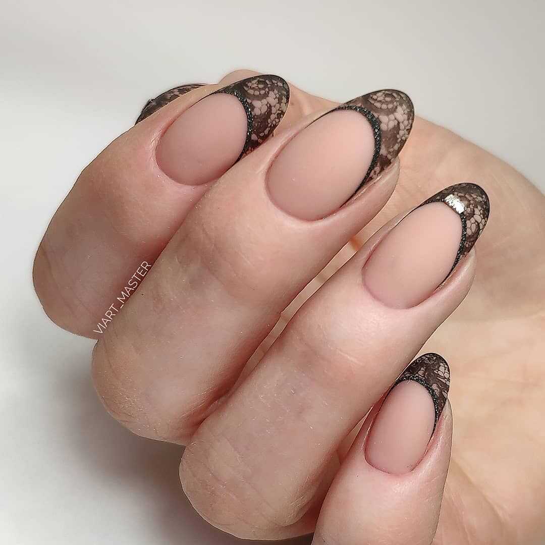 Элегантное кружево всегда смотрится дорого. Нежные завитушки могут украсить ноготки целиком или расположиться в уголке. Еще одно открытие мастеров нейл-арта: дизайн френча покрывают тонкими стеблями и веточками, стирая грань между улыбкой и основой.