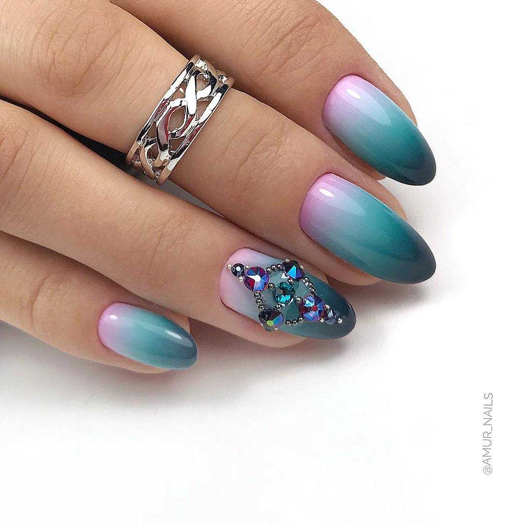 - Использование нежных, ярких оттенков гель-лака, перекликающихся с дополнительными акцентами или контрастирующих с основой;