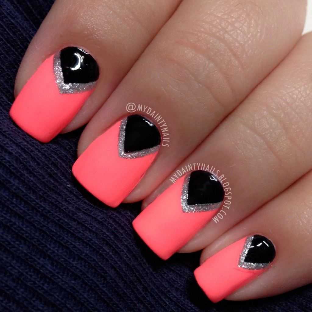 Импровизация здесь плохой помощник, который может привести к тому, что маникюр будет выглядеть аляписто и грязно. Взгляните на нейл-арты, представленные в нашем обзоре и вы поймете, как должен выглядеть идеальный коралловый маникюр с черным.
