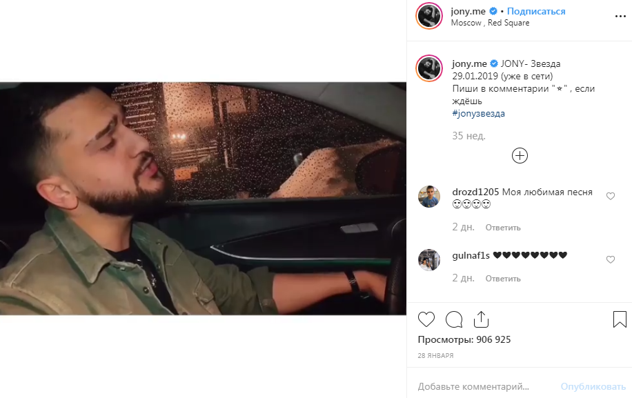 Композиция «Звезда» принесла исполнителю настоящий успех. Певец стал узнаваем не только среди отечественных меломанов, но и у зарубежных. Так, топ-модель Dolce & Gabanna и известный фотограф Тони Махфуд опубликовал этот ролик на своей страничке в Инстаграм.