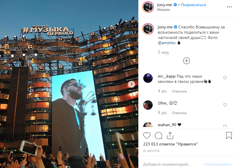 Количество фанов увеличивается с каждым днем. Многие музыкальные паблики выставляют на своих страницах синглы Jony, увеличивая тем самым количество своих подписчиков и армию фанатов певца.