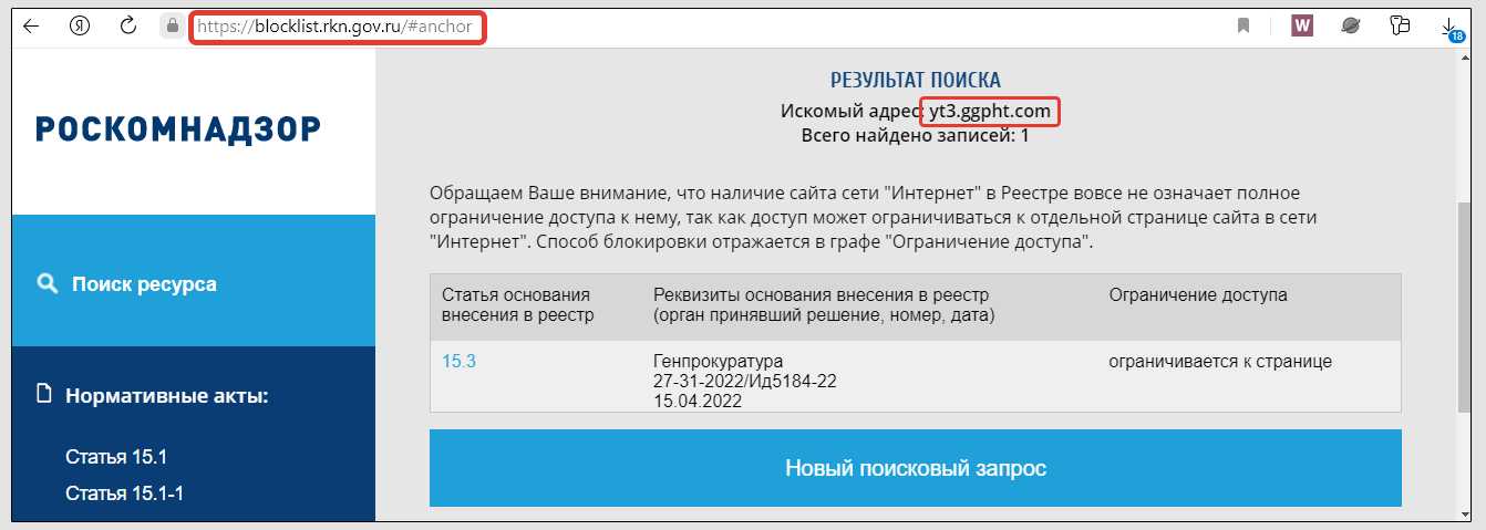 Запрет домена Ютуба yt3.ggpht.com на blocklist.rkn.gov.ru