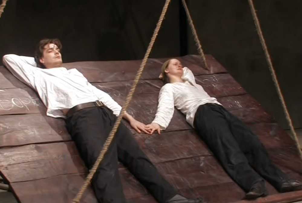 Максим Матвеев и Яна Сексте в спектакле «Сорок первый. Opus Posth». Кадр YouTube / МХТ имени А. П. Чехова