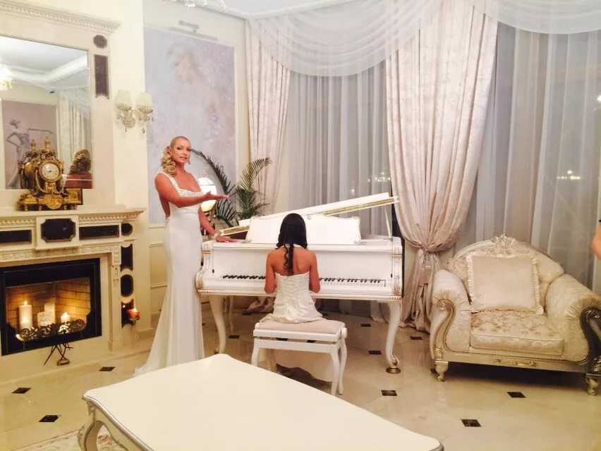 В комнате, помимо диванов и камина, установлен белоснежный рояль – это подарок Баскова, с которым Волочкова дружит уже много лет. Анастасия играет на инструменте нечасто, но приучает к искусству свою дочку, когда она гостит у нее.