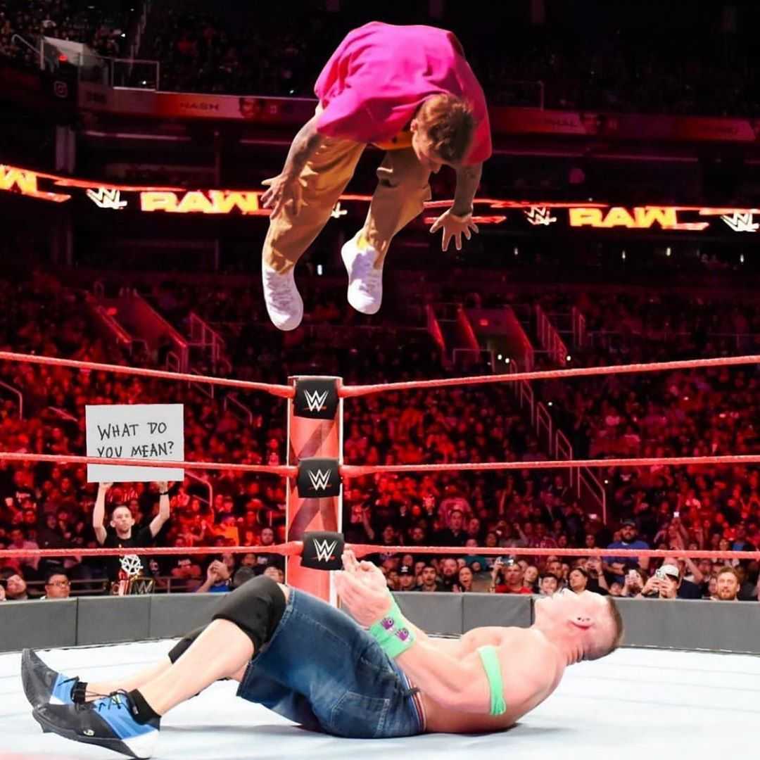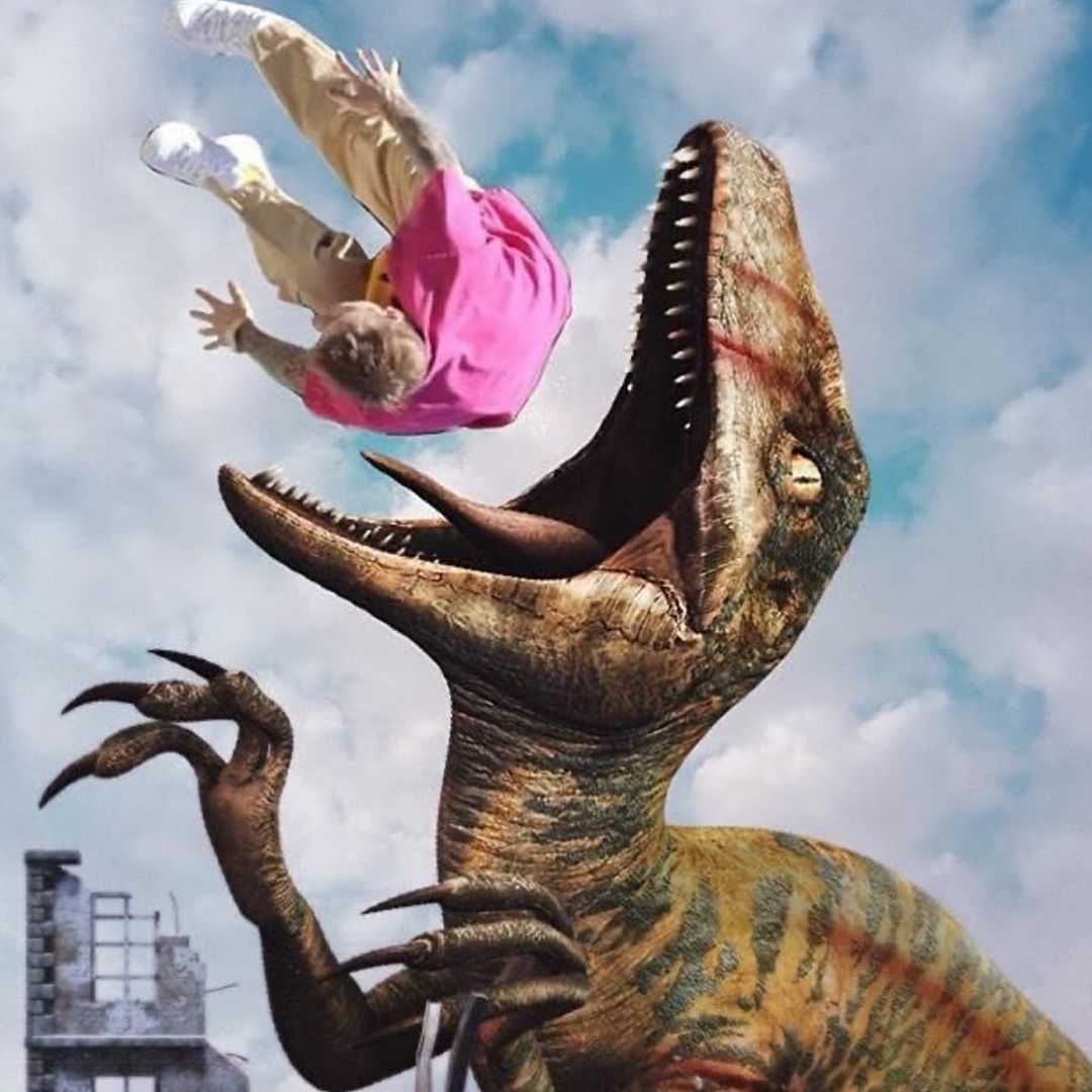 Вчера певец, вероятно, наткнулся на фанатское творчество и опубликовал несколько понравившихся ему фото на своей странице в Instagram. Джастин разметил снимок, как с самим падением, так и кадры, на которых прыгает с бассейна, летит в пасть к тираннозавру, свисает с баскетбольной корзины и не только. Музыкант обошелся короткими подписями в виде эмодзи и, судя по всему, посмеялся от души.