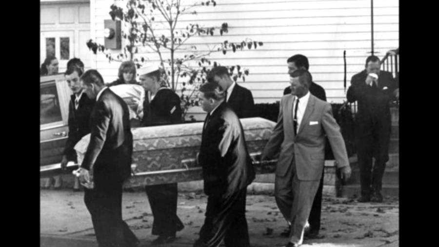 Welkerlots / YouTube Тело Сильвии Лайкенс несут в закрытом гробу, 1965 год.