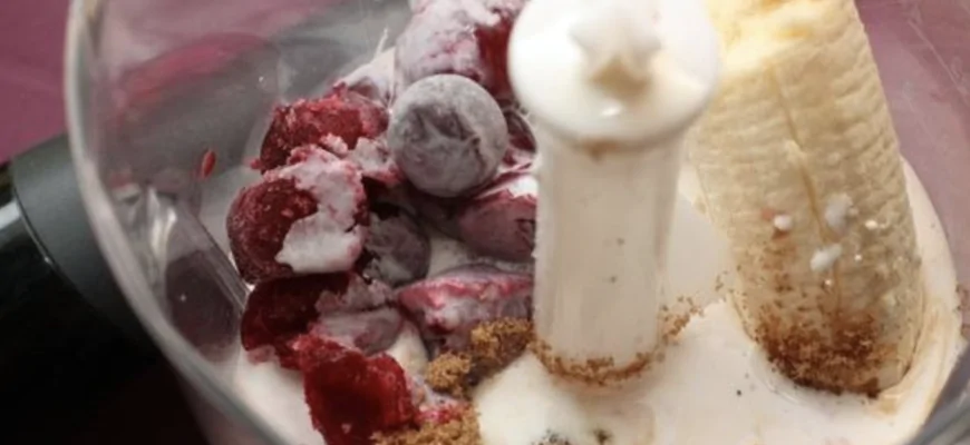 Понадобится: 60мл сладкого шампанского, 50г фруктов и ягод (персик, абрикос, груша, клубника, малина), по 1 ст.л. вишневого ликера, коньяка и сока лимона.