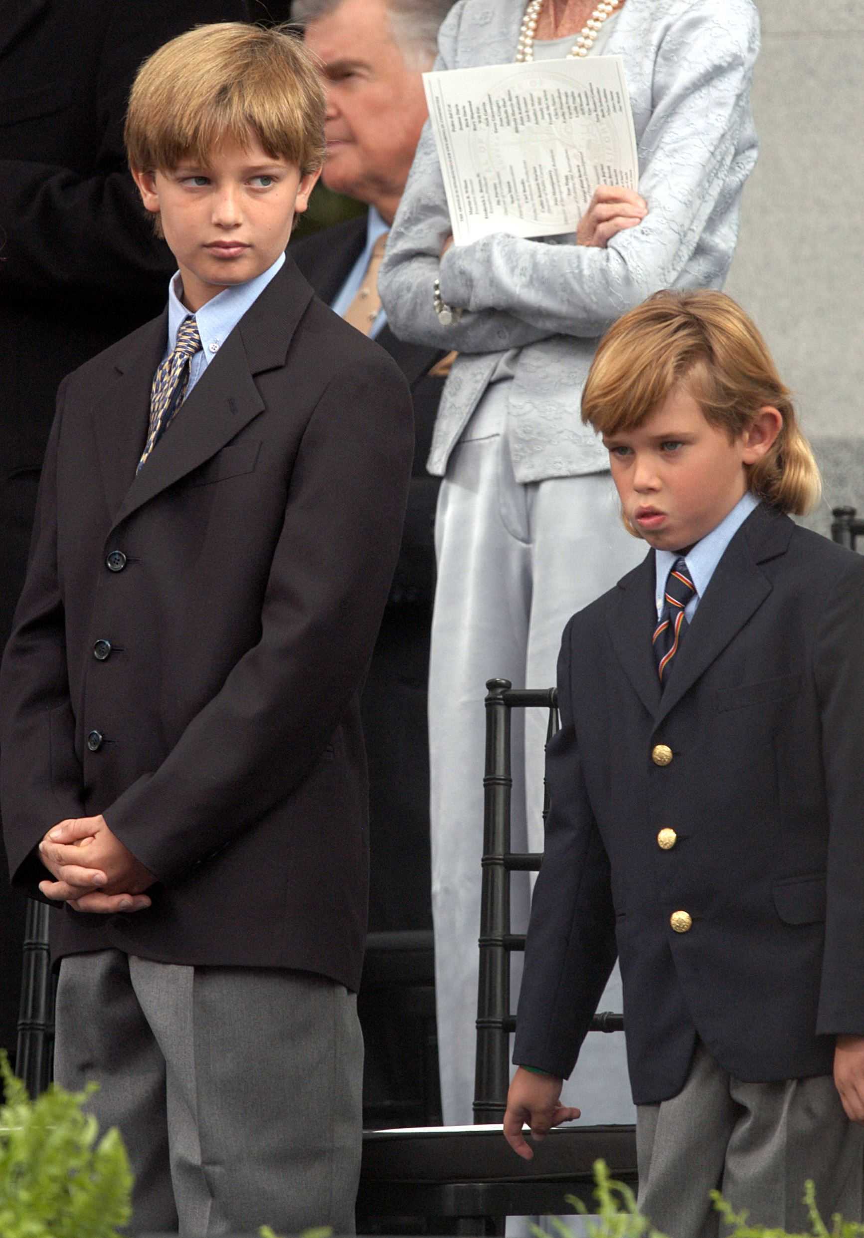 Патрик Шварценеггер (слева), сын Арнольда Шварценеггера и Марии Шивер, с младшим братом Кристофером в Калифорнии в 2003 году.