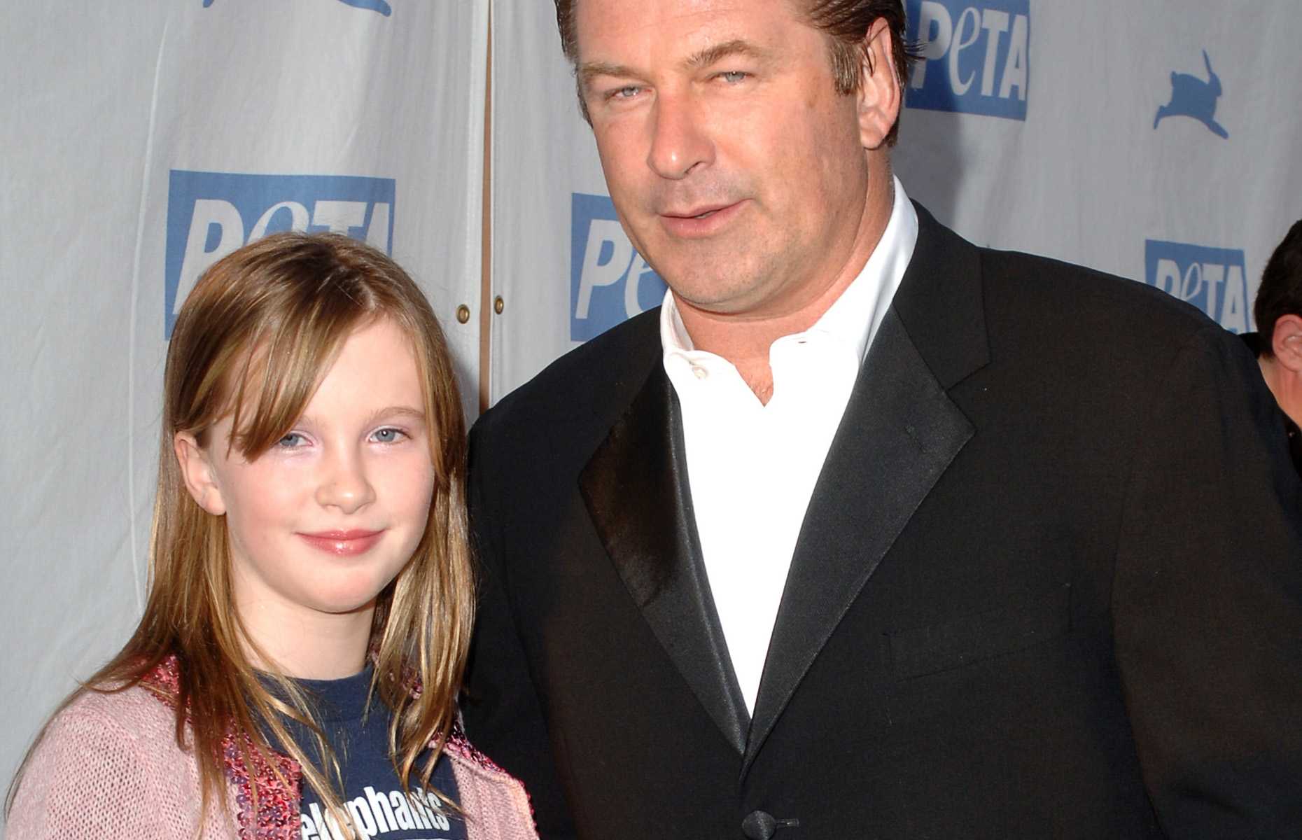 Алек Болдуин со своей дочерью Айленд на 25-ой годовщине PETA и шоу вручения наград Humanitarian Awards Show в 2005 году.