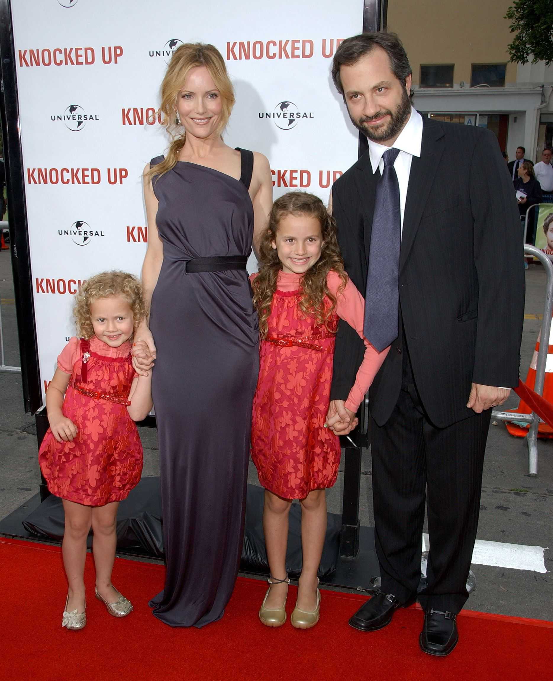 Лесли Манн и Джуд Апатоу с дочерями Мод (вторая справа) и Арис Аптоу на премьере фильма «Немножко беременна» в 2007 году.