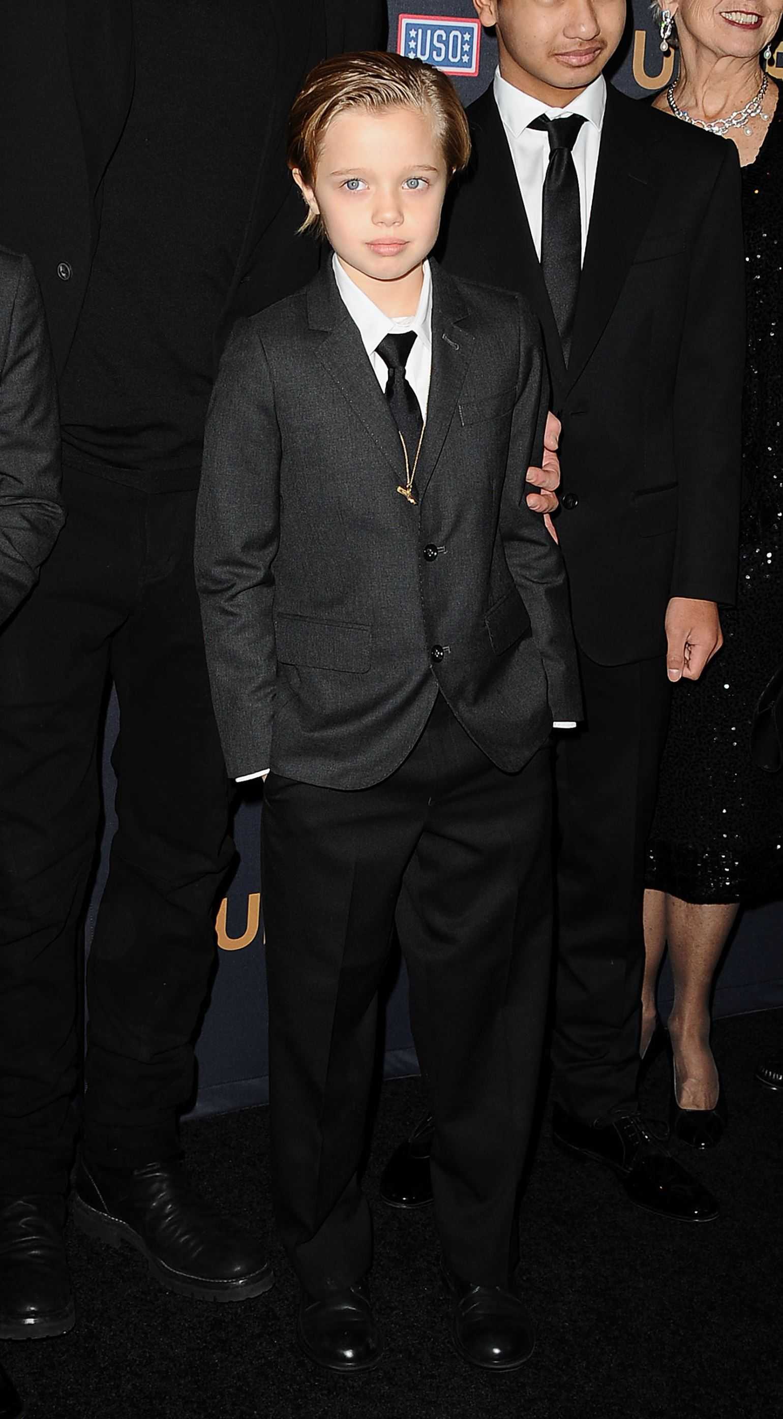Мэддокс Джоли-Питт вместе с родителями — Анджелиной Джоли и Брэдом Питтом на премьере фильма «Непокоренный» в Калифорнии в 2009 году.