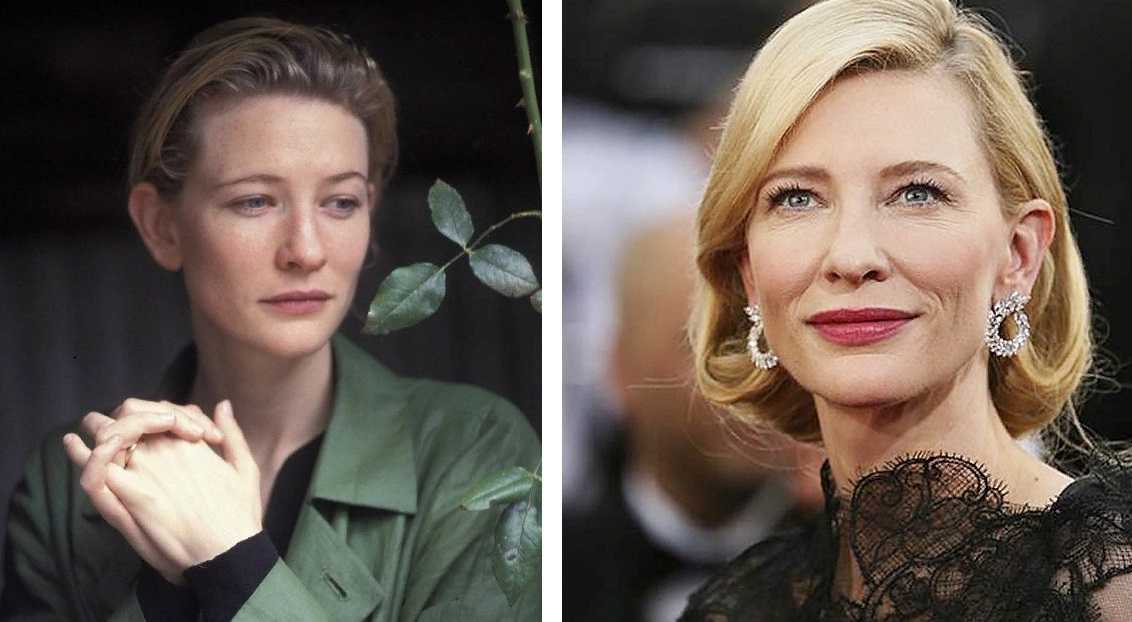 На фото Кейт Бланшетт в молодости и сейчас
