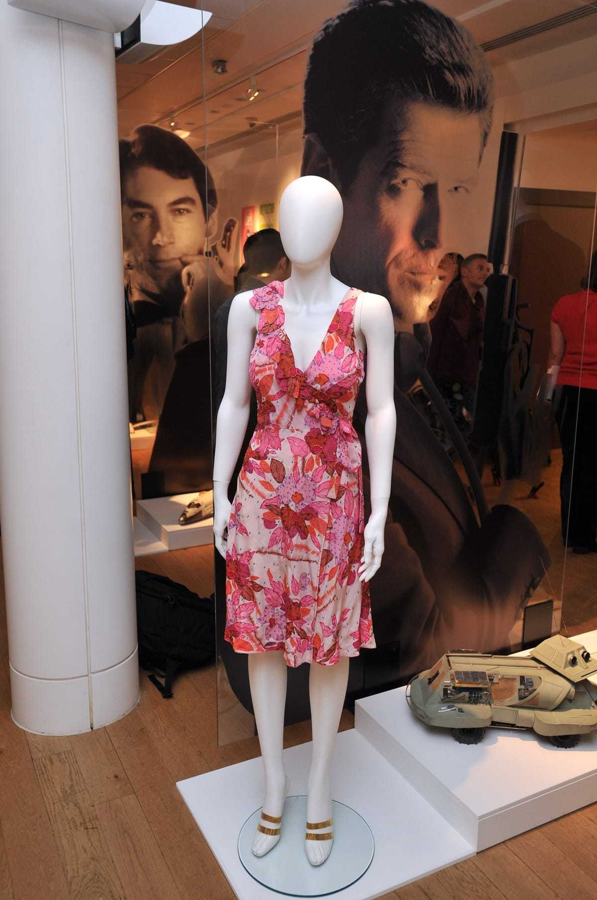 A silk wrap dress, designed by Lindy Hemming, worn by Halle Berry as Jinx in Die Another Day was auctioned by Christie’s in 2012 at the 50th anniversary of the release of Dr. No, the first film in the James Bond series (Credit: Daniel Deme / WENN)