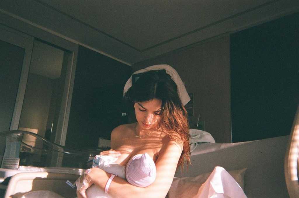 На фото, которое она выбрала для соцсети, Эмили нежно приживает малыша к обнаженной груди.