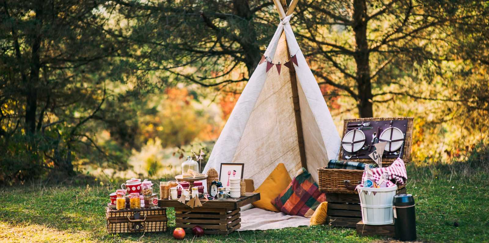 Если в первую очередь вы хотите насладиться природой, угощениями и хорошей компанией, то над оформлением места можно особо и не думать. Достаточно расстелить плед, расставить складную мебель или разбить палатку.