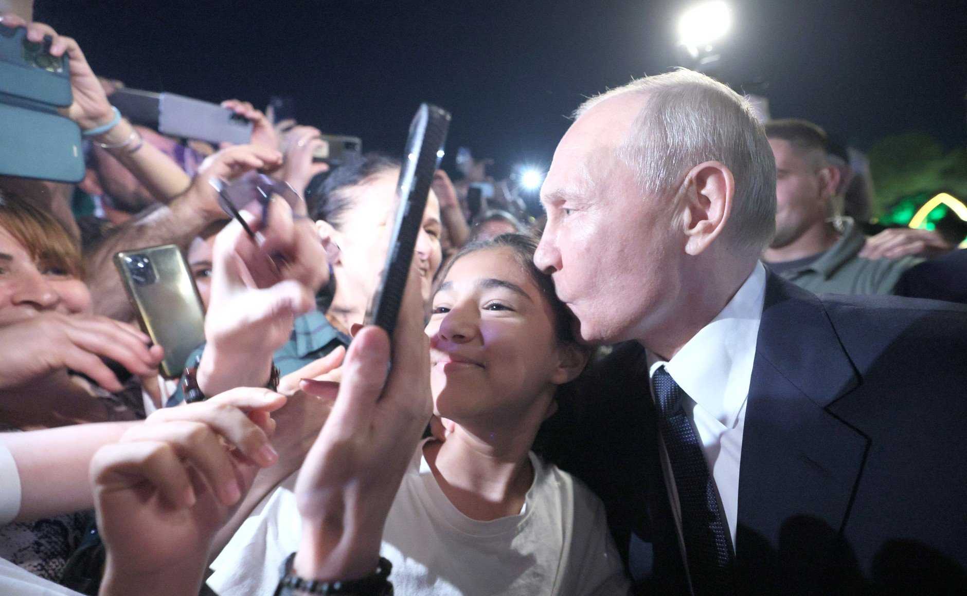 Однако с февраля 2023 российский президент стал довольно часто появляться на кадрах видео, где он близко общается с людьми. В феврале он принял участие в митинге в Лужниках. В марте появились кадры из оккупированного Мариуполя, где Путин общается с местными жителями. В июле он не просто общался, а в прямом смысле целовал некоторых жителей в дагестанском городе Дербенте. При этом «приемы за длинным столом» никуда не делись.