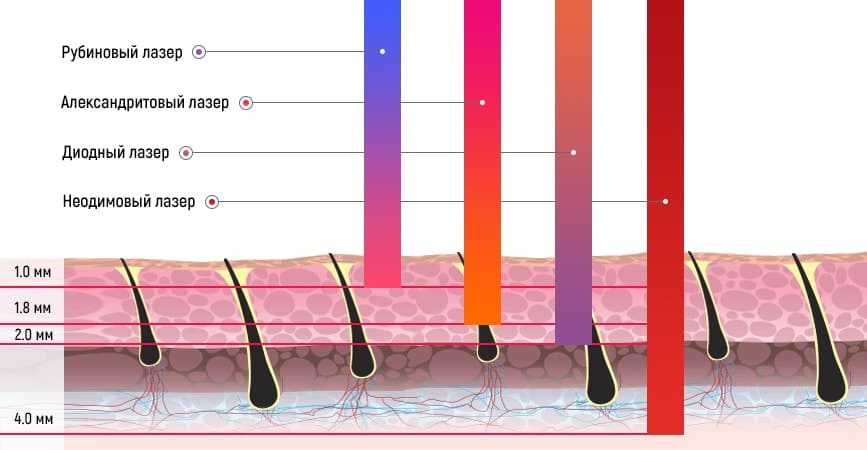 - Лазерная эпиляция — на кожу оказывается воздействие специальным лазером.