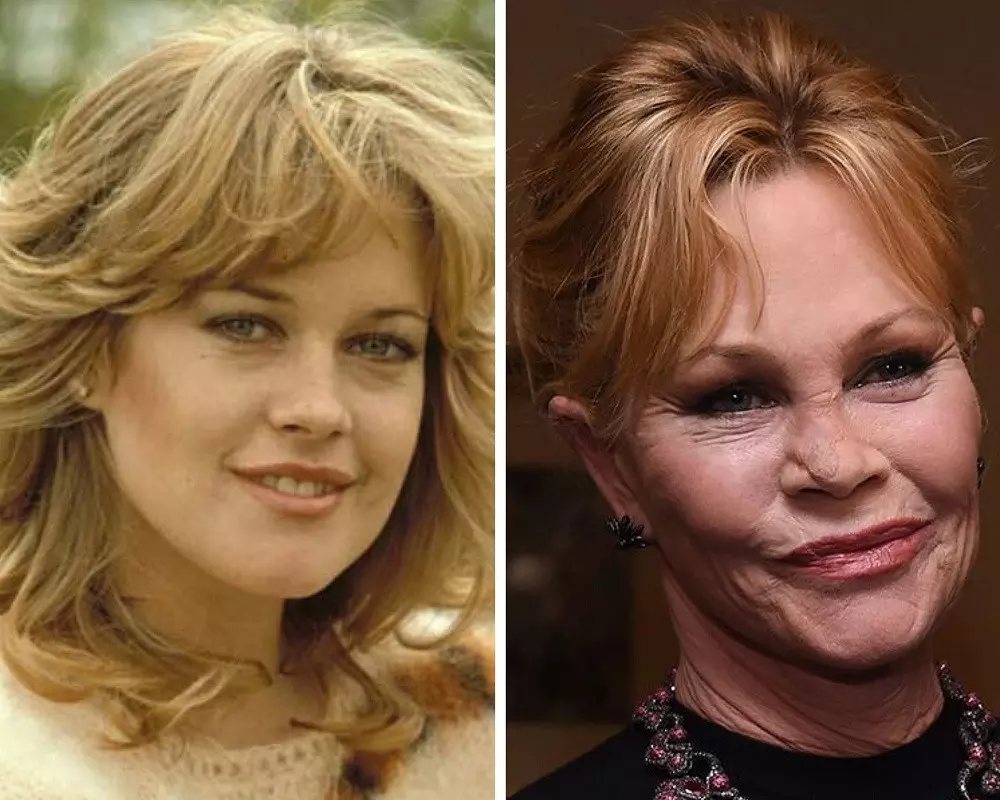 В начале карьеры красотой юной американки Мелани Гриффит восхищались все. В роковую блондинку, известную по фильмам «Улыбка», был влюблен практически каждый мужчина. Собственно поэтому для большинства коллег остается загадкой, для чего ей понадобилась пластика, притом звезда изменила нос, скулы, губы. Затем неоднократно прибегала к подтяжке лица, регулярно делала инъекции ботокса.