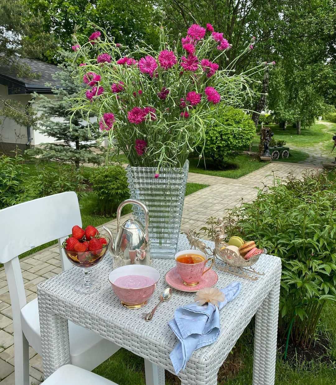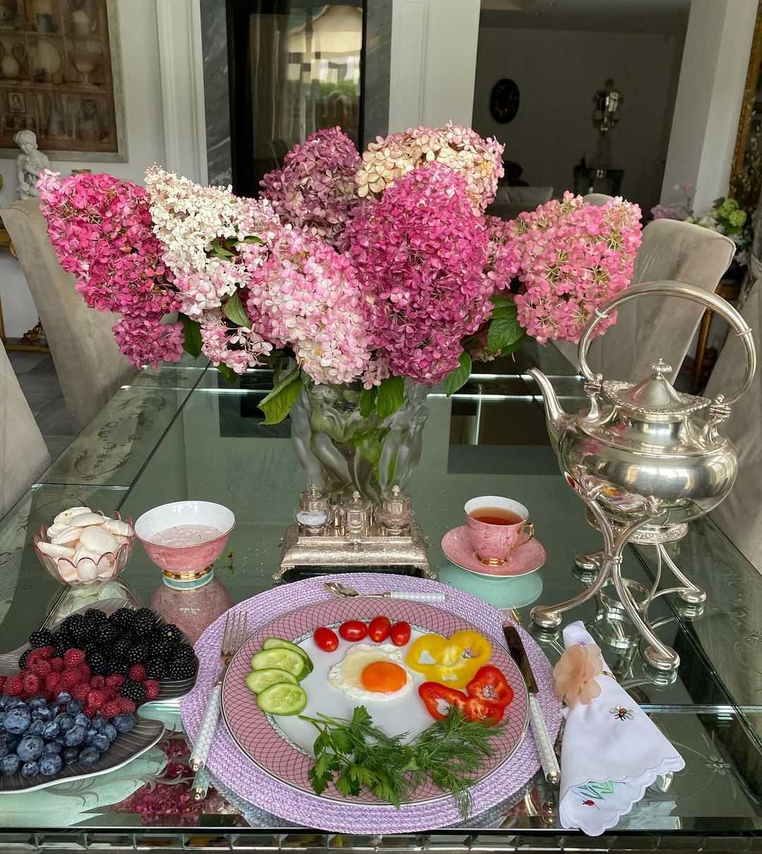 «Доброе утро! В этом году гортензии каких-то гигантских размеров. Сегодня поздний̆ завтрак… Я ровно месяц как перешла на интервальное питание. Только завтрак и ужин, между ними перерыв 8 часов, потом 16 часов ничего не ем и отлично себя чувствую. Перекусы есть, но редко и то между завтраком и ужином. Сбросила лишние 2 кг. И кстати ем все и сладкое тоже.»