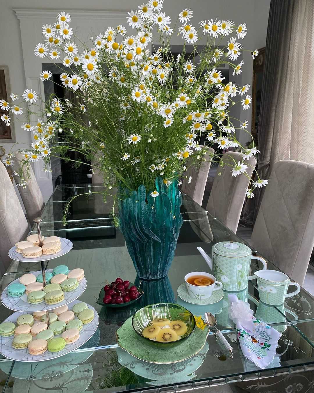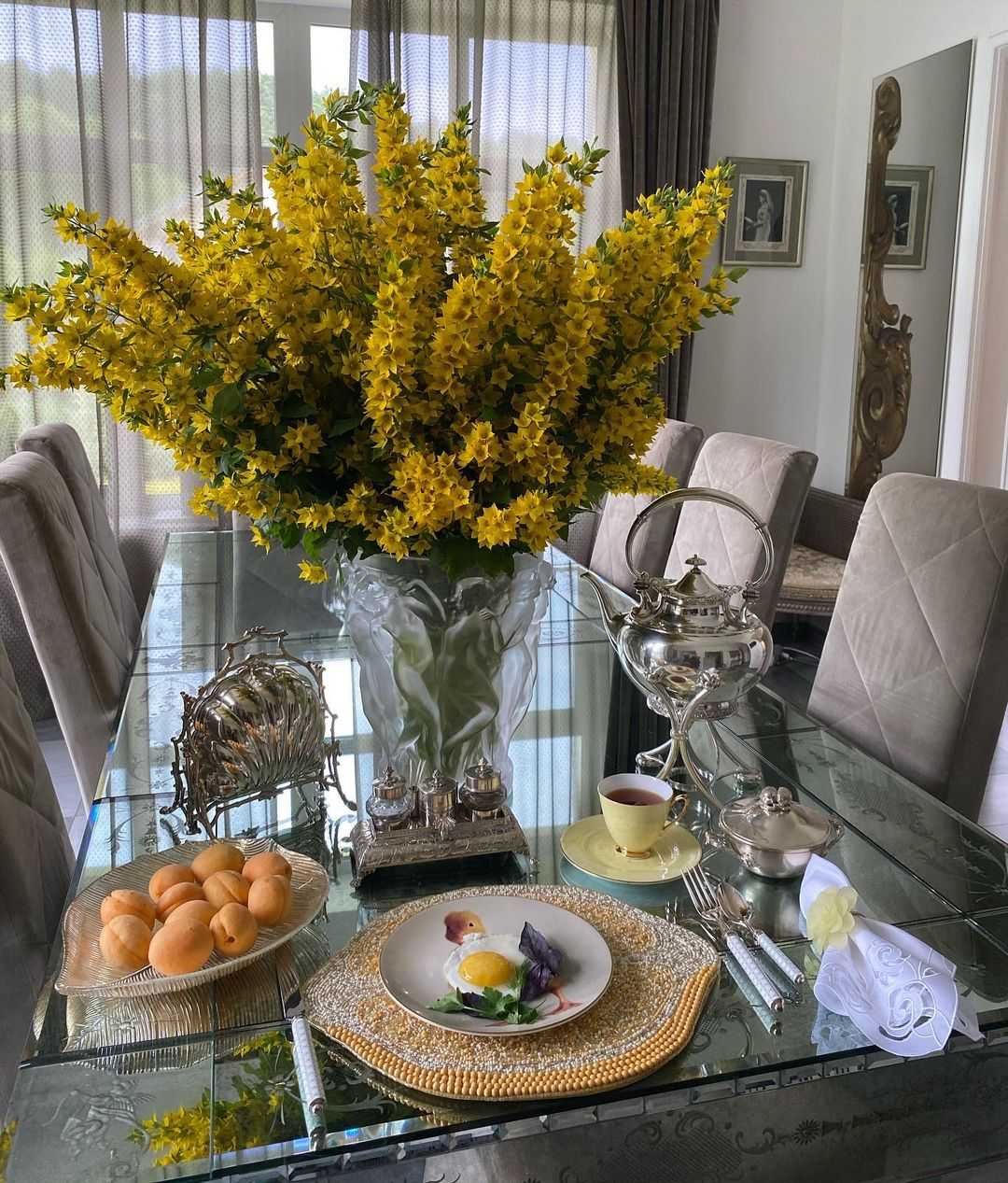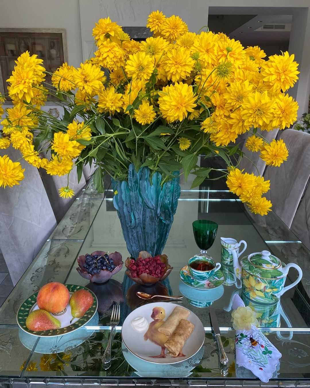 45-летняя бизнес-вумен регулярно радует своих подписчиков шикарными букетами, собранными к семейному завтраку. Цветы в рубрике Яны «Мои завтраки» настолько хороши, что некоторые хейтеры подозревают, что это искусственные соцветия. Но сомневаться в натуральности нет смысла. Звездная семья кроме того, что очень хорошо зарабатывает и имеет возможность получать уникальные цветы со всего света, супруги составляют букеты из растений собственного сада.