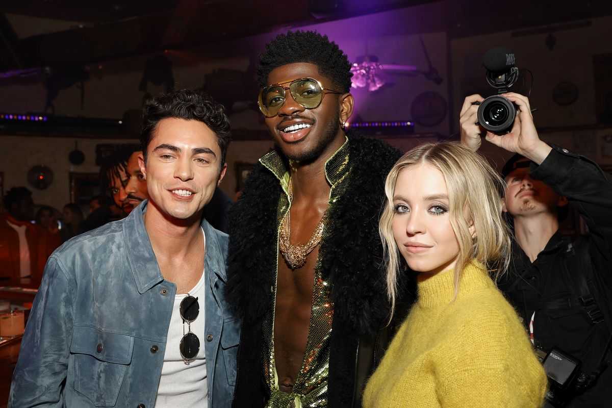 Даррен Барнет, Лил Нас Икс и Сидни Суини на вечеринке Tom Ford Beauty в Западном Голливуде, 2 декабря 2021 г.