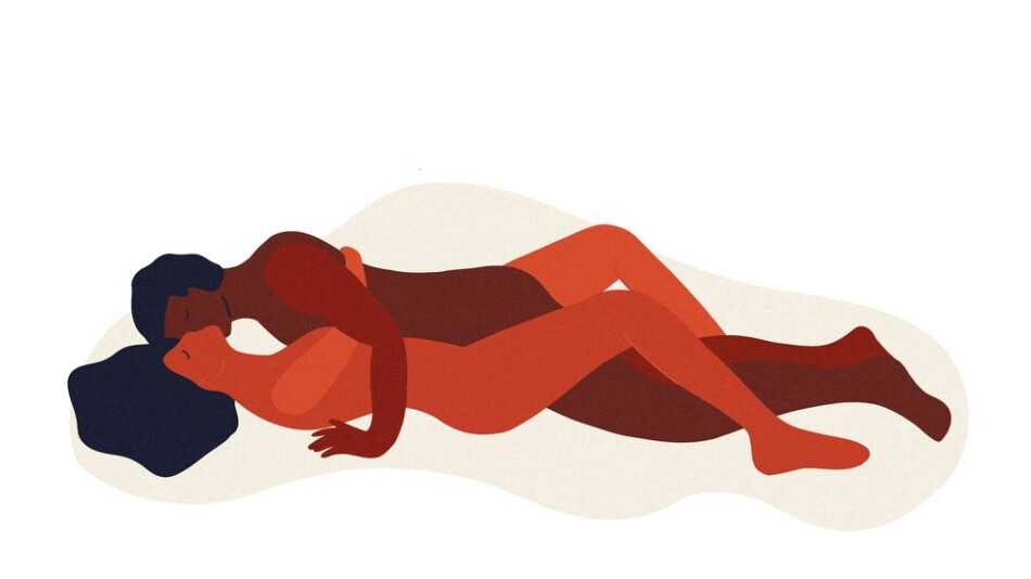 Идеальная позиция для тех, кто любит начинать свой день с секса. Для этого вы оба должны лежать на боку, ваш партнёр прижимается к вам сзади и входит в вас. Для удобства можно немного согнуть ноги в коленях и подтянуть их к груди. И не забывайте, что у вас обоих свободны руки для ласки, так что можно не ограничиваться одними толчками.