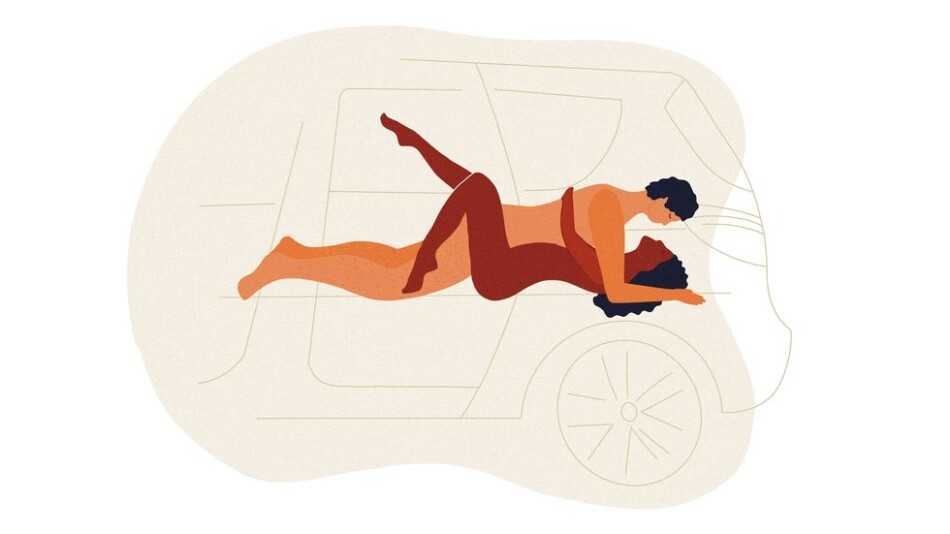 Положение женщина сверху, при котором партнёр сидит, опираясь о спинку кровати, дивана или стену, всё ещё оставляет контроль за ней, но позволяет и не устраивать дикие скачки, и немного расслабиться — например, откинувшись на согнутые колени мужчины. Ему, кстати, особенно напрягаться точно не придётся.