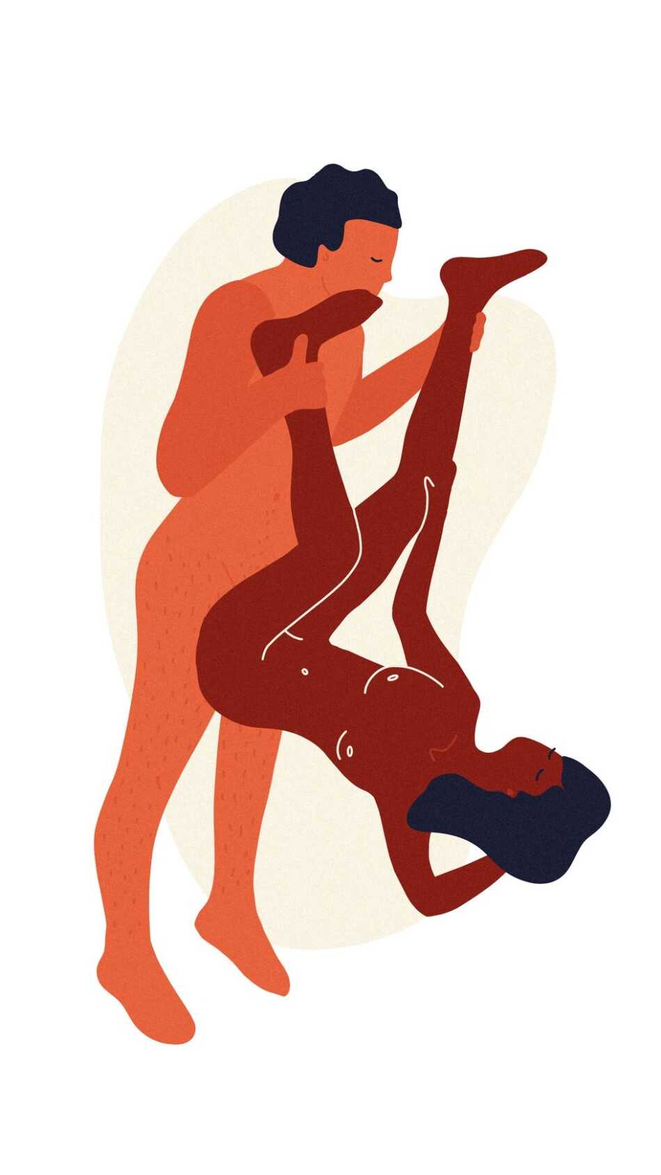 Эта вариация миссионерской позы, при которой девушка закидывает одну или обе ноги на плечи мужчине, подходит для глубокого проникновения. Ведь даже если вы устали, это не означает, что надо жертвовать интенсивностью. Впрочем, позиция всё ещё остаётся довольно расслабленной. По крайней мере для партнёрши.