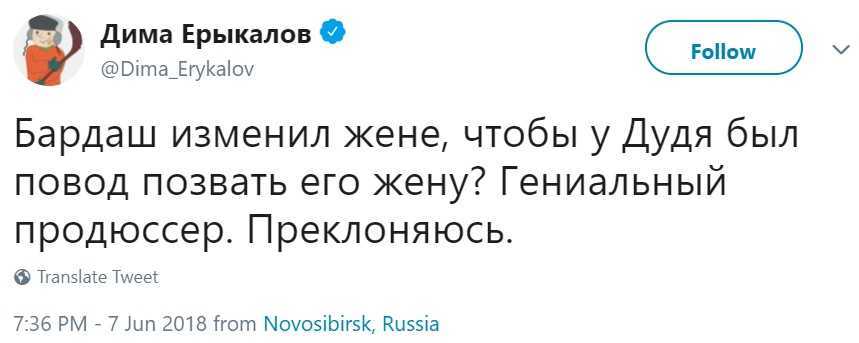 «Благодарю вас, люди добрые, за то что радуетесь за нас. Будем жить!» — отметил Юрий под постом (орфография и пунктуация автора даны без изменений. — Прим. ред.). Добавим, что с бывшей женой Кристиной Герасимовой Юрий расстался со скандалом. Например, Бардаш публично говорил о том, что экс-супруга изменял ему. При этом новый избранник Кристины и вовсе был коллегой и приятелем Юрия.