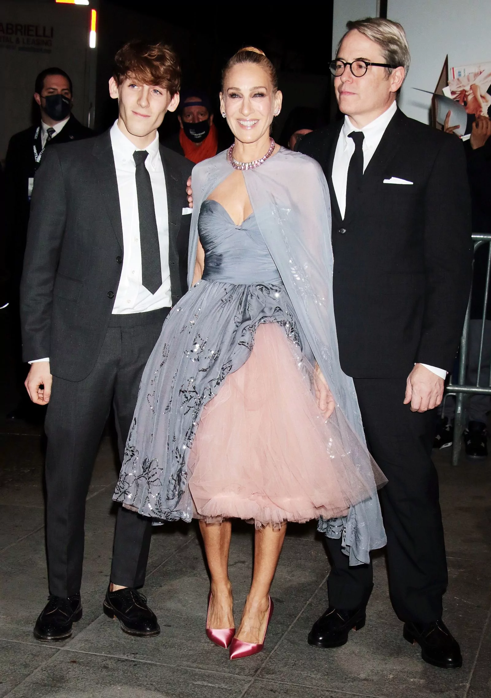Сара Джессика Паркер с сыном Джеймсом Бродериком и мужем Мэттью Бродериком на премьере сериала «И просто так» в Нью-Йорке, 8 декабря 2021 г.
