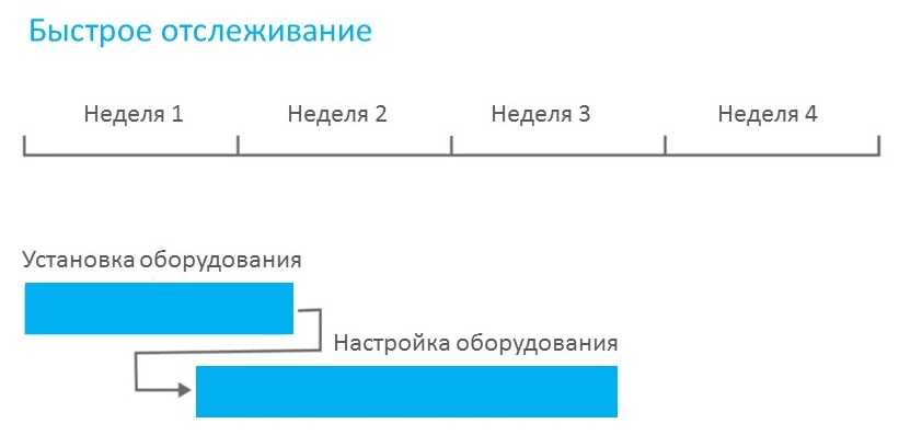 С помощью быстрого отслеживания вы перекрываете задачи, которые обычно выполняются одна за другой. Например, если вы хотите завершить установку оборудования быстрее, некоторые работники могут начать настройку оборудования, а другие – размещать оборудование в помещениях.