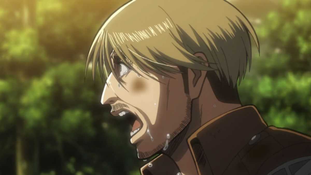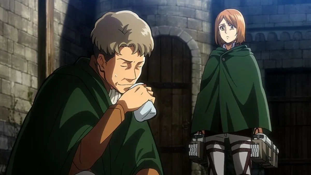 К сожалению, эта сцена смерти стала еще более впечатляющей, когда ее позже переработали и доработали. Энни, Райнер и Бертольдт несут прямую ответственность за его смерть, забрав у него его мобильное снаряжение, чтобы убедиться, что он не сможет раскрыть кому-либо еще, что они были предателями и титанами, атакующими Паради.